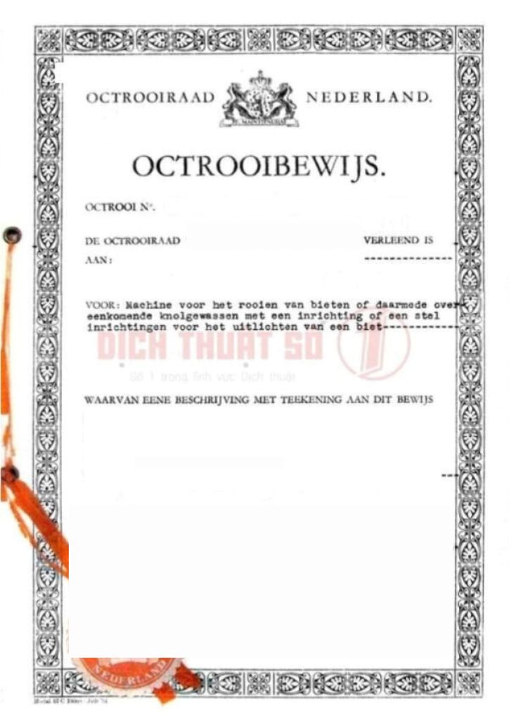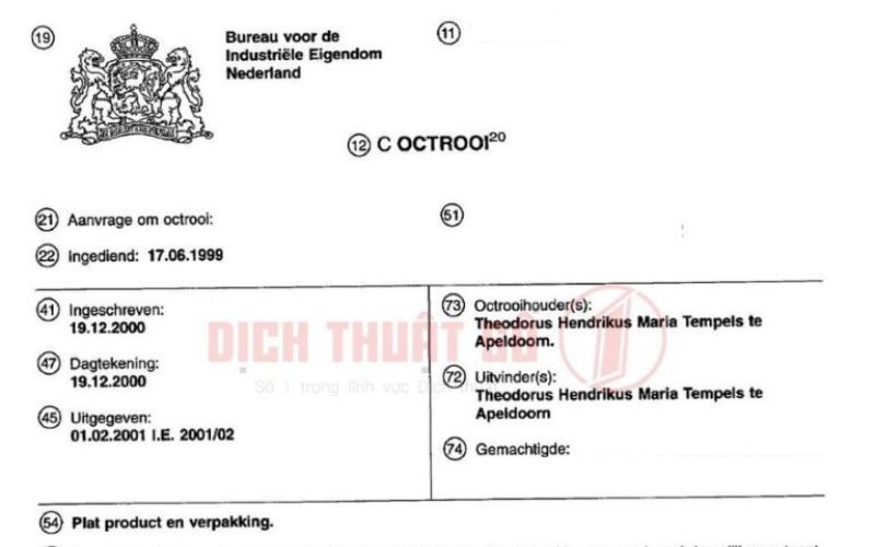 Bảng Giá Dịch Thuật Công Chứng Bằng Sáng Chế Hà Lan Mới Nhất