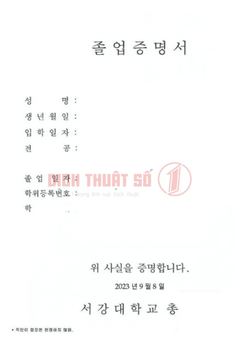 Đơn Vị Dịch Thuật Công Chứng Bằng Tốt Nghiệp Sang Tiếng Hàn Uy Tín