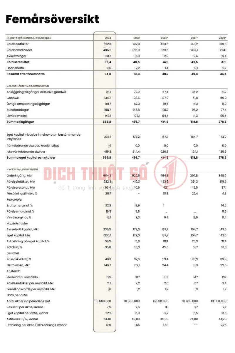 Dịch Thuật Số 1 cung cấp giải pháp dịch thuật công chứng báo cáo tài chính tiếng Thụy Điển toàn diện. Đáp ứng mọi nhu cầu của doanh nghiệp và cá nhân khi làm hồ sơ pháp lý, kế toán – kiểm toán hoặc giao dịch quốc tế.