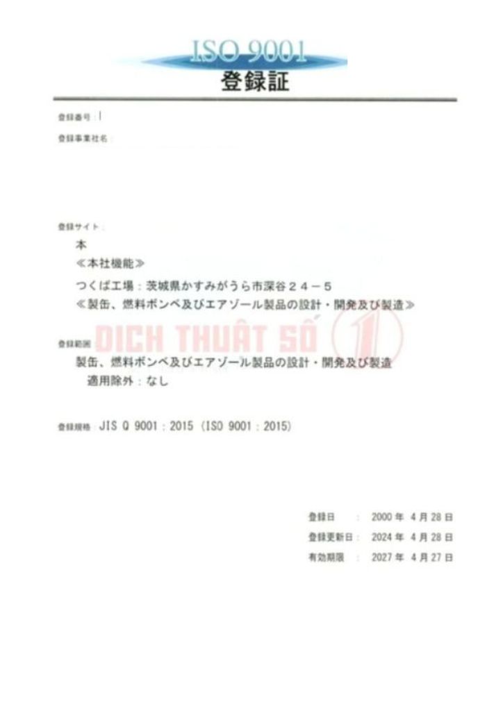Địa Chỉ Dịch Thuật Công Chứng Giấy Chứng Nhận ISO Sang Tiếng Nhật Uy Tín