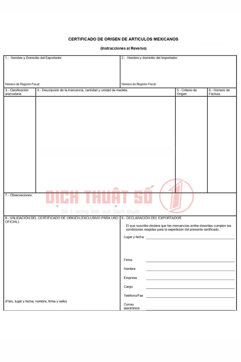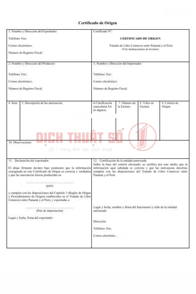 Dịch Thuật Công Chứng Giấy Chứng Nhận Xuất Xứ Tây Ban Nha Chuyên Nghiệp