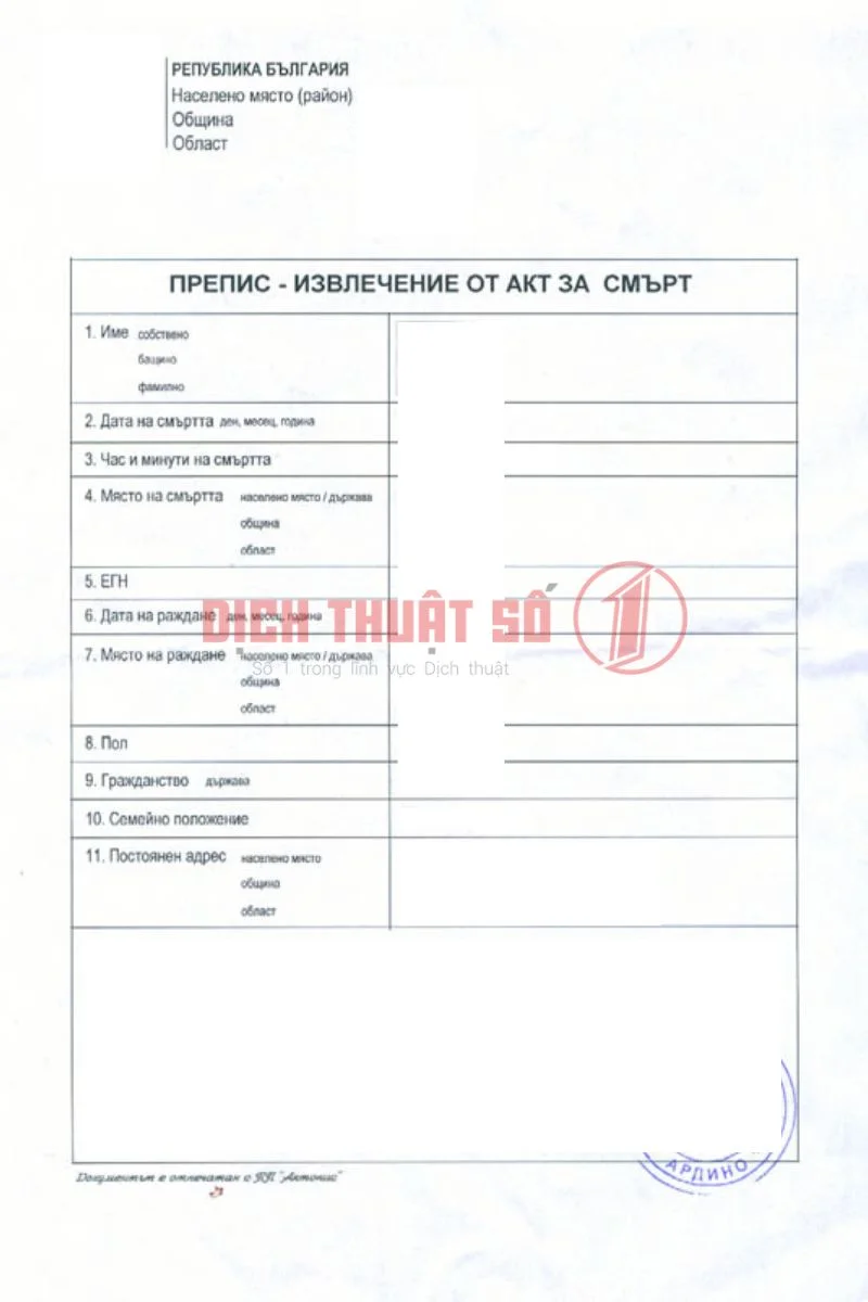 Dịch Thuật Công Chứng Giấy Chứng Tử Tiếng Bulgaria Uy Tín, Nhanh Chóng