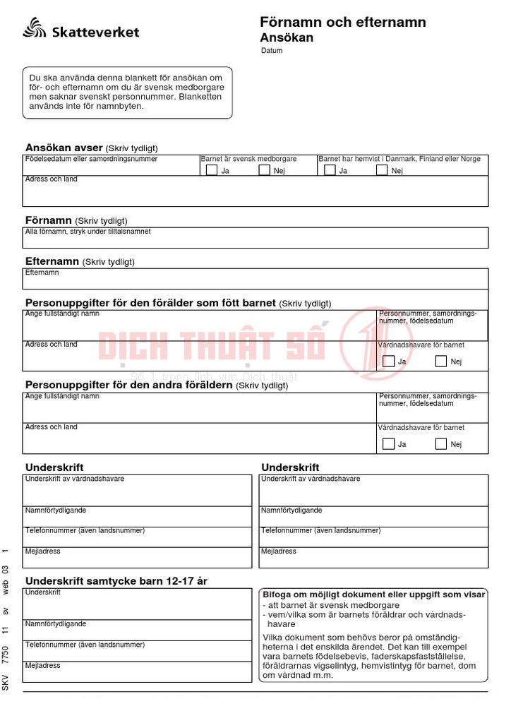 - Thủ tục pháp lý khác: Liên quan đến nhập quốc tịch, khai báo hộ tịch hoặc làm giấy tờ hành chính tại Thụy Điển.