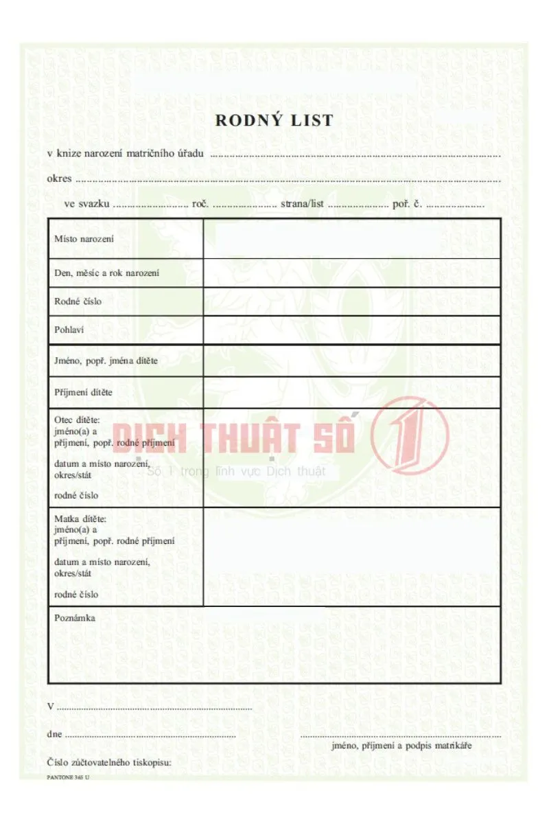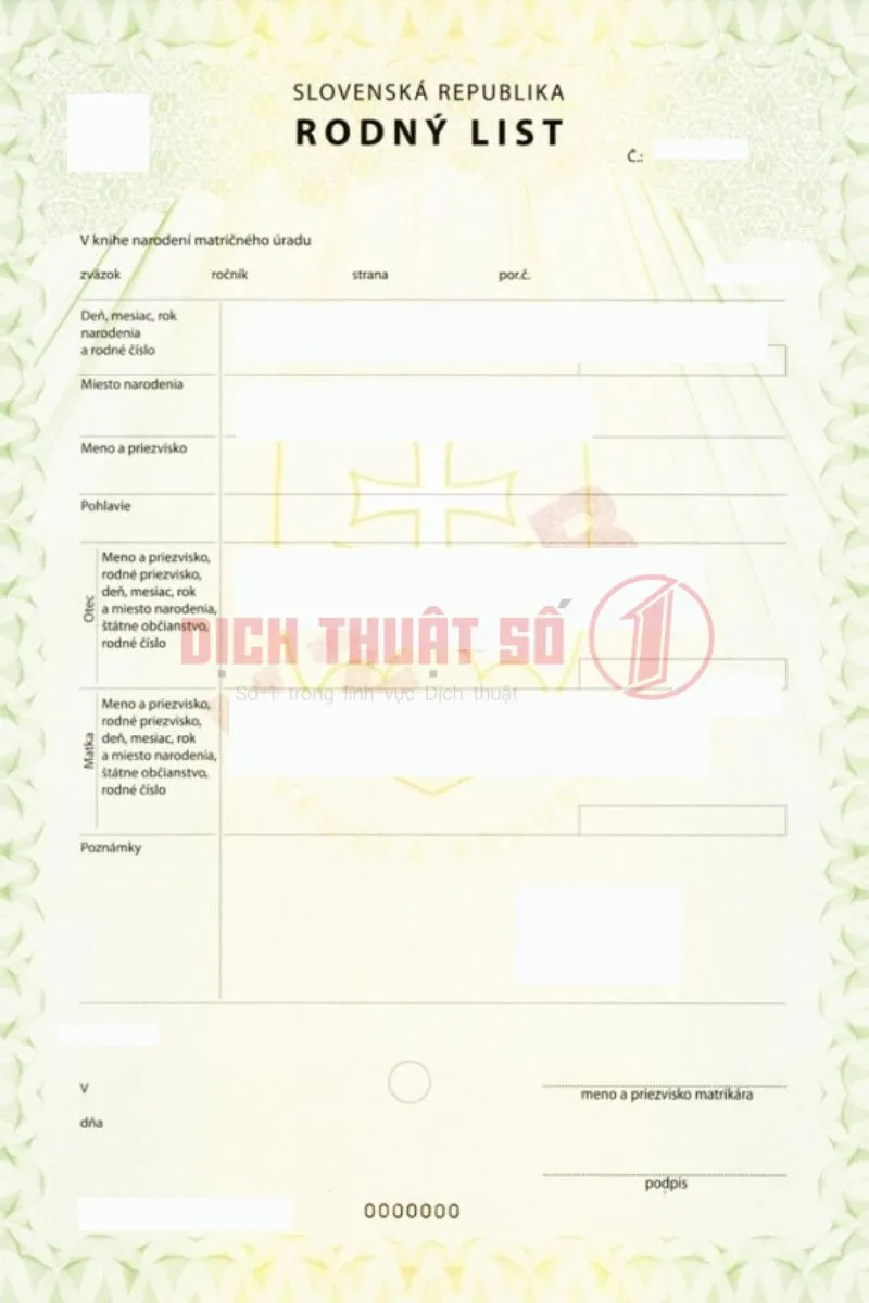 Bạn đang cần dịch thuật công chứng giấy khai sinh tiếng Slovakia để sử dụng cho thủ tục hành chính, du học, hay làm việc tại nước ngoài? Tại Dịch Thuật Số 1, chúng tôi cung cấp dịch vụ trọn gói, đảm bảo bản dịch chính xác, công chứng hợp pháp và thời gian hoàn thành nhanh chóng, giúp bạn yên tâm xử lý mọi giấy tờ liên quan.