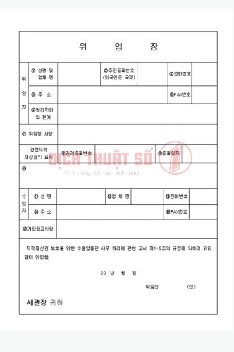 Dịch thuật công chứng giấy ủy quyền tiếng Hàn là yêu cầu bắt buộc khi bạn cần sử dụng văn bản này trong các thủ tục hành chính, pháp lý hoặc giao dịch dân sự tại Việt Nam. Nội dung giấy ủy quyền thường liên quan đến tài sản, hợp đồng, đại diện pháp lý hoặc các quyền và nghĩa vụ quan trọng, do đó bản dịch cần đảm bảo chính xác tuyệt đối về thuật ngữ và hình thức trình bày. Với đội ngũ biên dịch viên am hiểu tiếng Hàn và quy định pháp luật hiện hành, Dịch Thuật Số 1 cung cấp dịch vụ dịch thuật công chứng chuyên nghiệp, hỗ trợ khách hàng hoàn thiện hồ sơ nhanh chóng, đúng quy định và hạn chế tối đa sai sót.