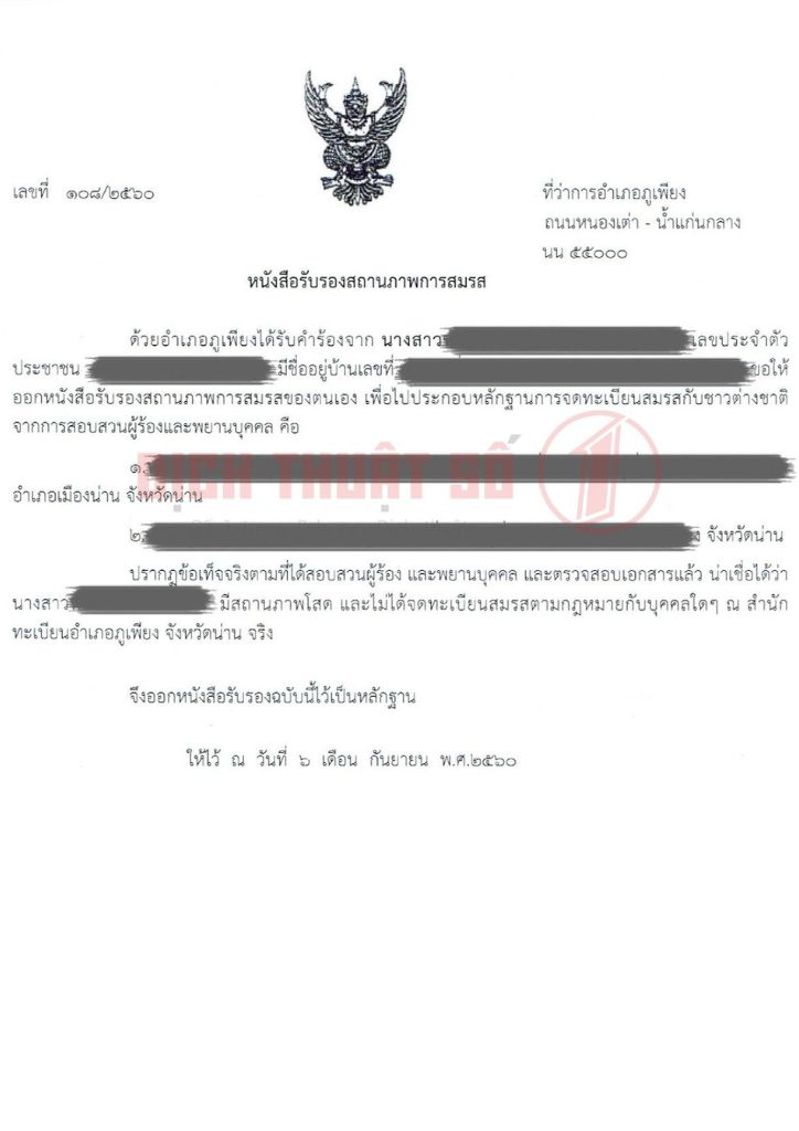 >> Xem thêm: Dịch Vụ Hợp Pháp Hóa Lãnh Sự Giấy Xác Nhận Tình Trạng Hôn Nhân Thái Lan Nhanh Chóng.