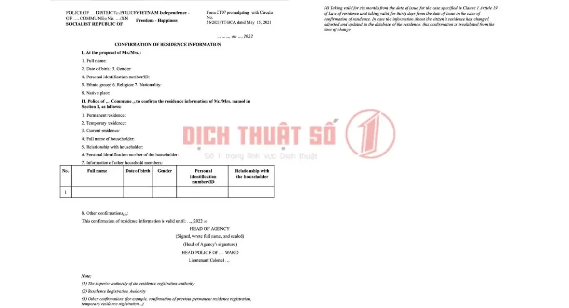 >> Xem thêm: Dịch Vụ Dịch Thuật Công Chứng Giấy Xác Nhận Cư Trú Sang Tiếng Anh.