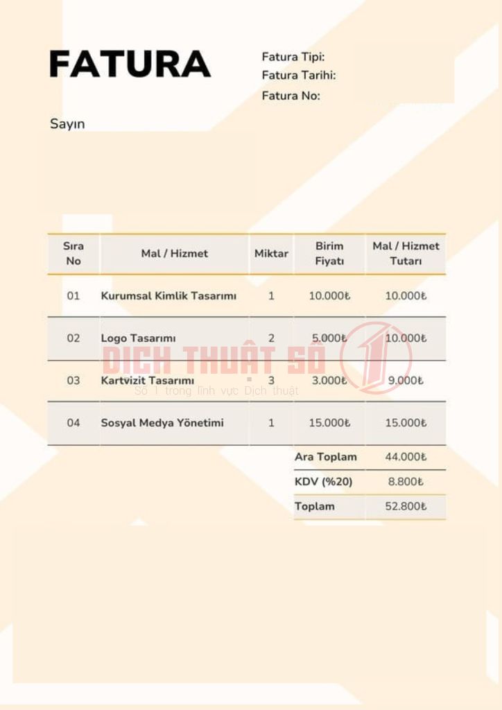 Nếu bạn đang tìm dịch vụ dịch thuật công chứng hóa đơn thương mại sang tiếng Thổ Nhĩ Kỳ nhanh chóng, chính xác và hợp pháp. Hãy liên hệ ngay với Dịch Thuật Số 1 để được hỗ trợ trọn gói và chuyên nghiệp nhất.