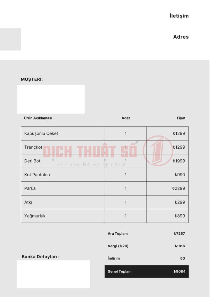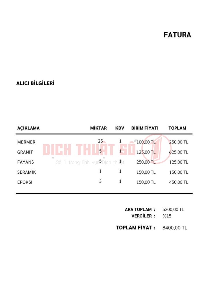 Địa Chỉ Dịch Thuật Công Chứng Hóa Đơn Thương Mại Sang Tiếng Thổ Nhĩ Kỳ Uy Tín