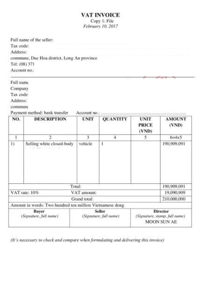 - Hóa đơn tài chính (hóa đơn VAT): Được sử dụng trong hoạt động kinh doanh, xuất nhập khẩu… Thường phải dịch công chứng khi nộp cho cơ quan thuế hoặc đối tác nước ngoài.