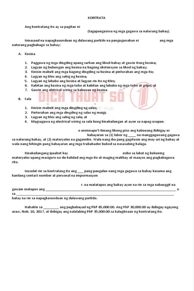 Dịch vụ dịch thuật công chứng hợp đồng lao động tiếng Philippines (Filipino) tại Dịch Thuật Số 1 được triển khai theo tiêu chuẩn pháp lý chặt chẽ. Đáp ứng đầy đủ yêu cầu sử dụng cho các thủ tục hành chính tại Việt Nam.