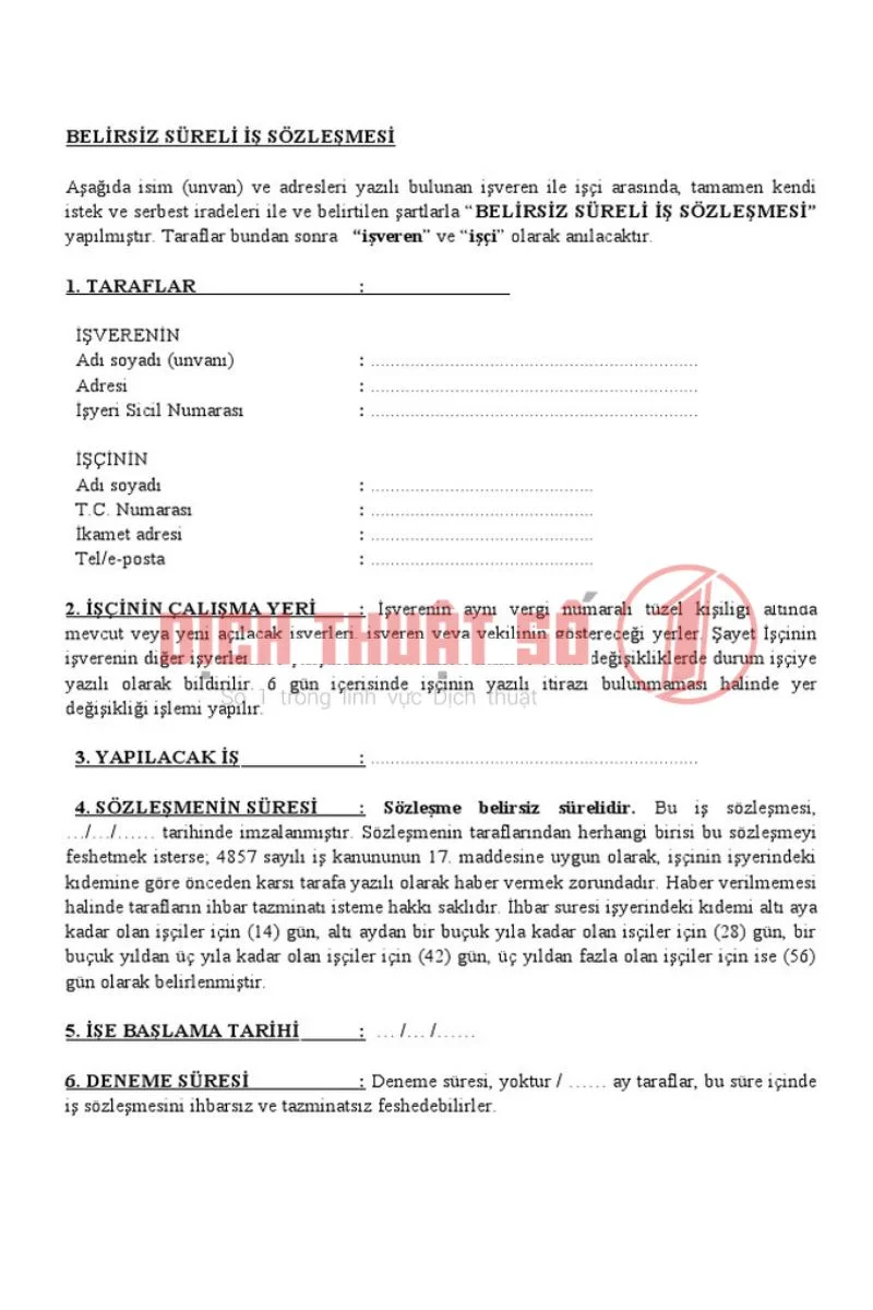 Quy Trình Dịch Thuật Công Chứng Hợp Đồng Lao Động Tiếng Thổ Nhĩ Kỳ Chuẩn