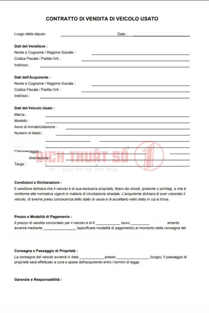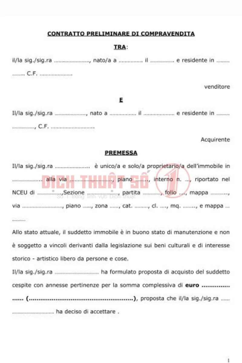 Dịch Thuật Số 1 cung cấp dịch vụ dịch thuật công chứng hợp đồng mua bán tiếng Ý trọn gói, hỗ trợ khách hàng hoàn thiện hồ sơ đúng quy định và tiết kiệm thời gian.