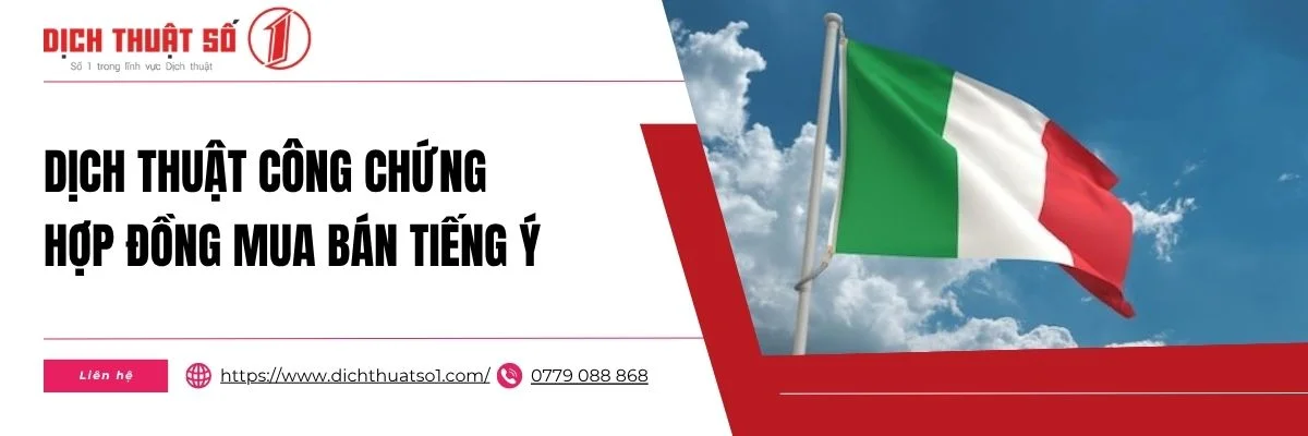 Lựa chọn dịch thuật công chứng hợp đồng mua bán tiếng Ý tại Dịch Thuật Số 1 là giải pháp tối ưu giúp đảm bảo tính chính xác và hợp pháp của tài liệu. Với kinh nghiệm thực tế và cam kết chất lượng, đơn vị mang đến dịch vụ nhanh chóng, hiệu quả, đáp ứng tốt nhu cầu của cá nhân và doanh nghiệp trong các giao dịch quốc tế. Liên hệ ngay.