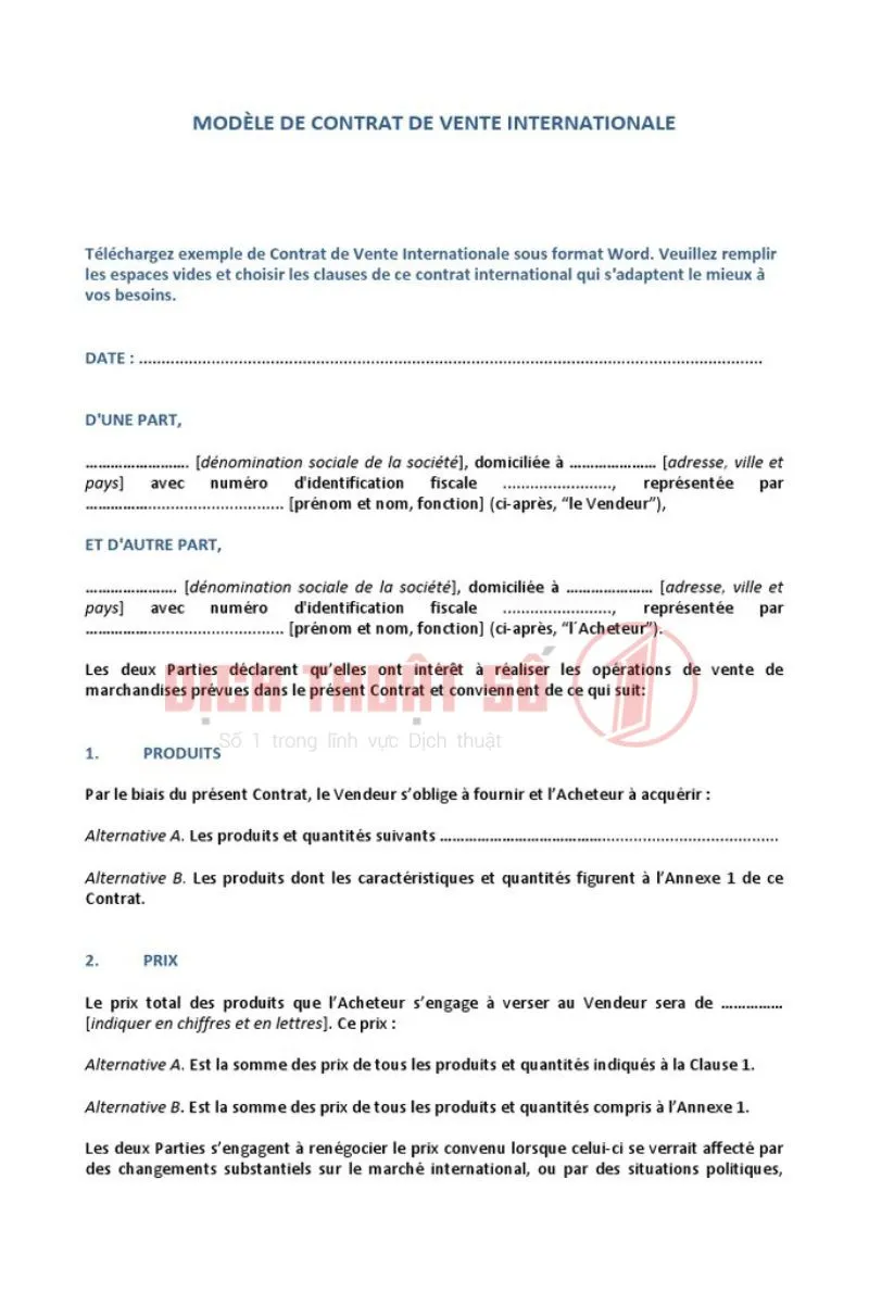 Dịch Thuật Số 1 cam kết mang đến bản dịch công chứng hợp đồng ngoại thương tiếng Pháp chuẩn xác, nhanh chóng và hợp pháp.