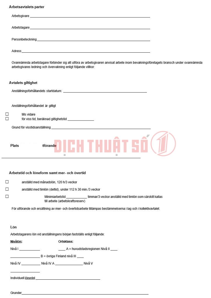 Bảng Giá Dịch Thuật Công Chứng Hợp Đồng Lao Động Sang Tiếng Thụy Điển: