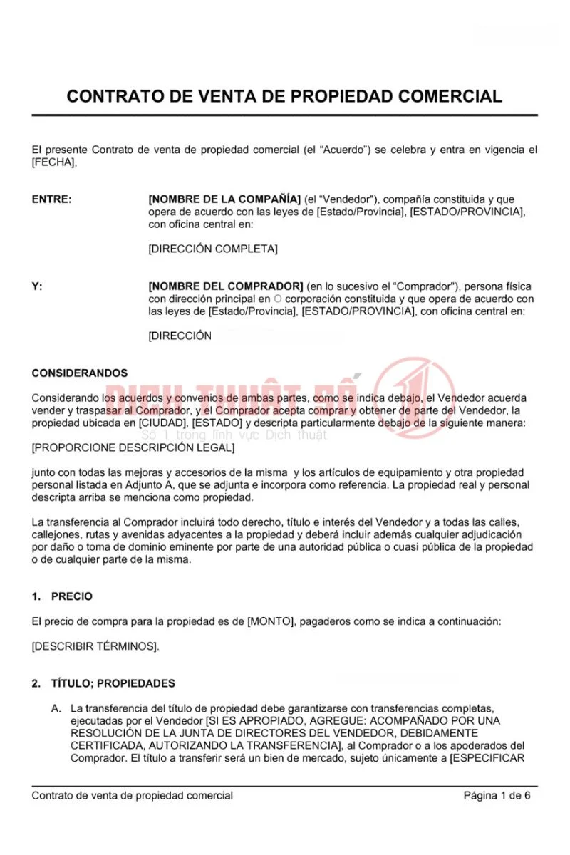 Bảng Giá Dịch Thuật Công Chứng Hợp Đồng Thương Mại Tiếng Tây Ban Nha