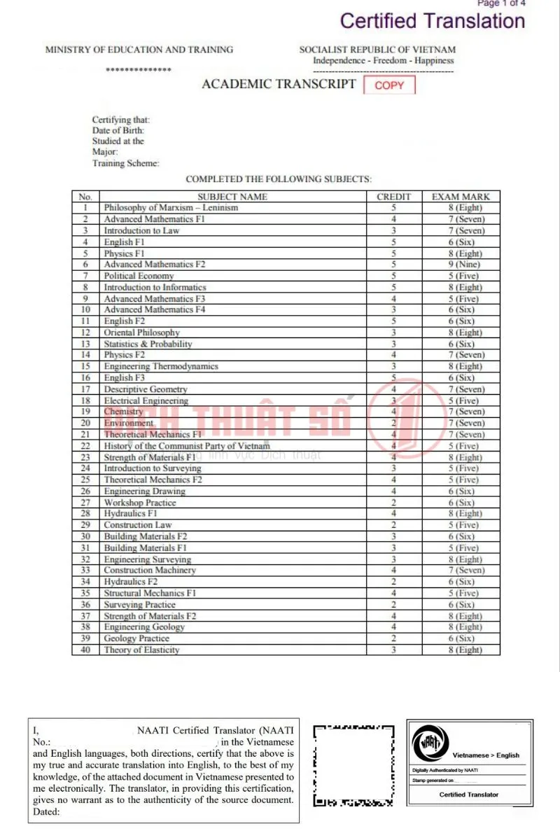 >> Xem thêm: Dịch Thuật Bảng Điểm Có Chứng Nhận NAATI Tại Dịch Thuật Số 1.