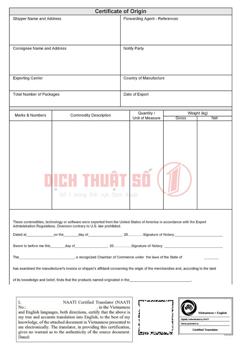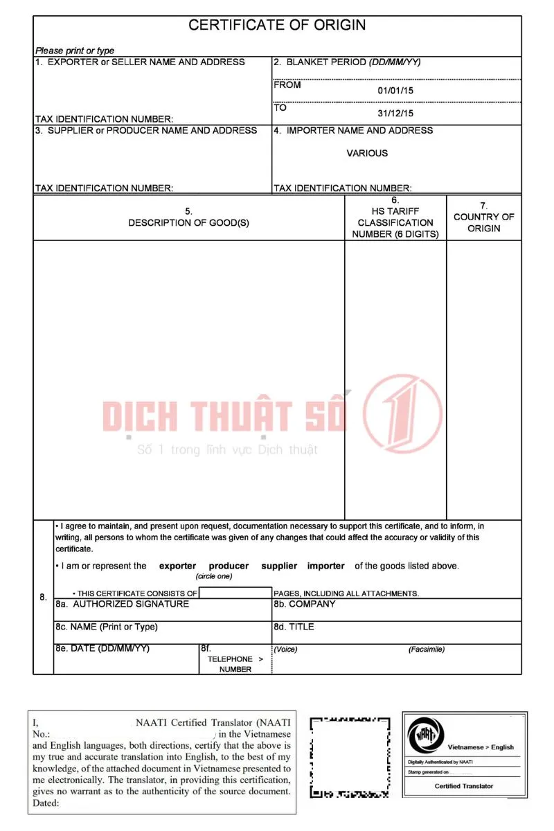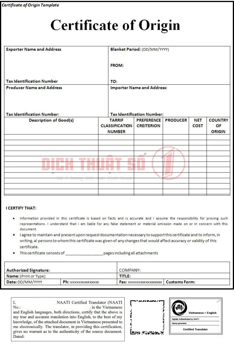 Quy Trình Dịch Thuật Giấy Chứng Nhận Xuất Xứ Có Chứng Nhận NAATI