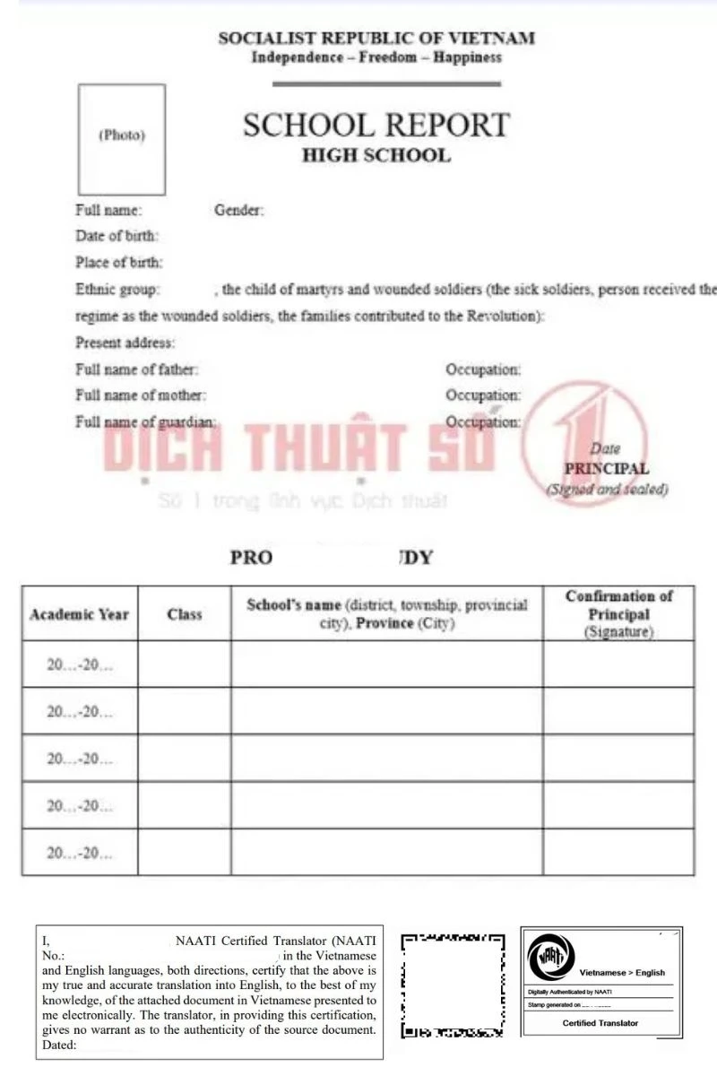 Dịch Thuật Số 1 Dịch Thuật Học Bạ Có Chứng Nhận NAATI Uy Tín Nhất