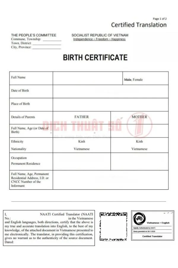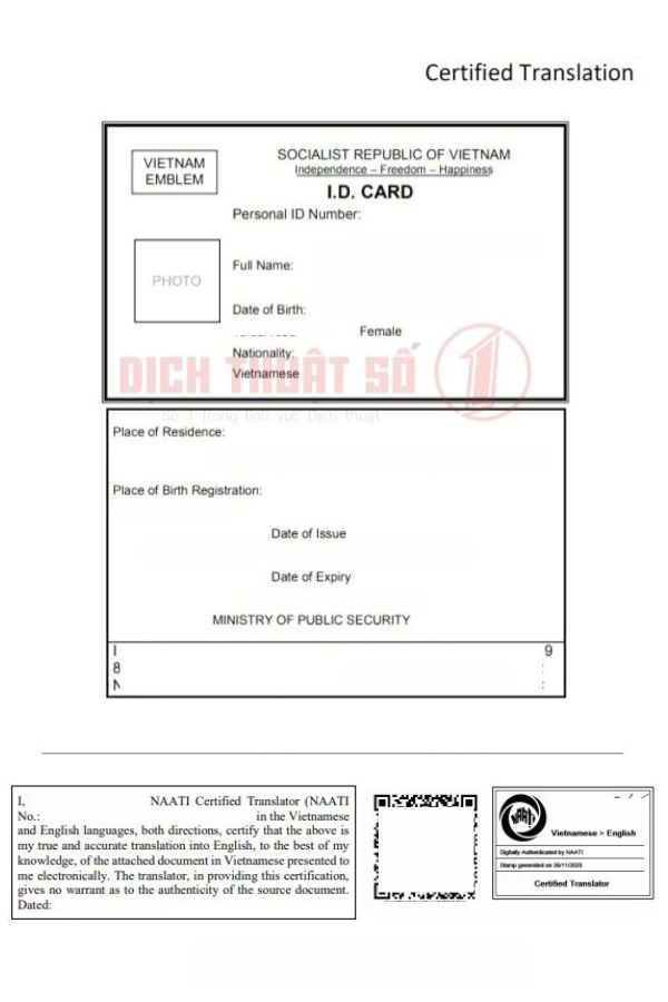 >> See more: Dịch Thuật Sổ Hộ Khẩu Có Chứng Nhận NAATI Uy Tín Tại Dịch Thuật Số 1.