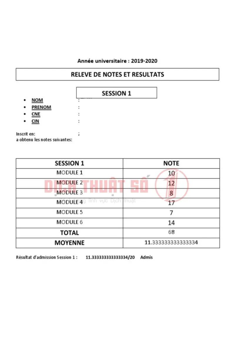 Contact No.1 Translation ngay hôm nay để được hỗ trợ dịch thuật công chứng bảng điểm tiếng Pháp trọn gói, tiết kiệm thời gian và đảm bảo hồ sơ hợp pháp, được chấp nhận tuyệt đối.