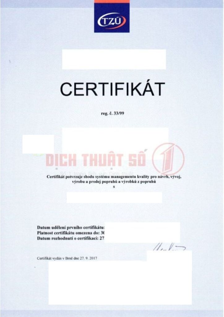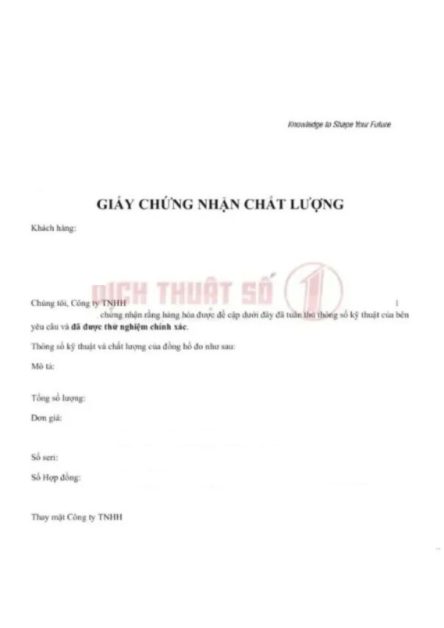 Dịch Thuật Công Chứng Giấy Chứng Nhận Chất Lượng Tại Dịch Thuật Số 1