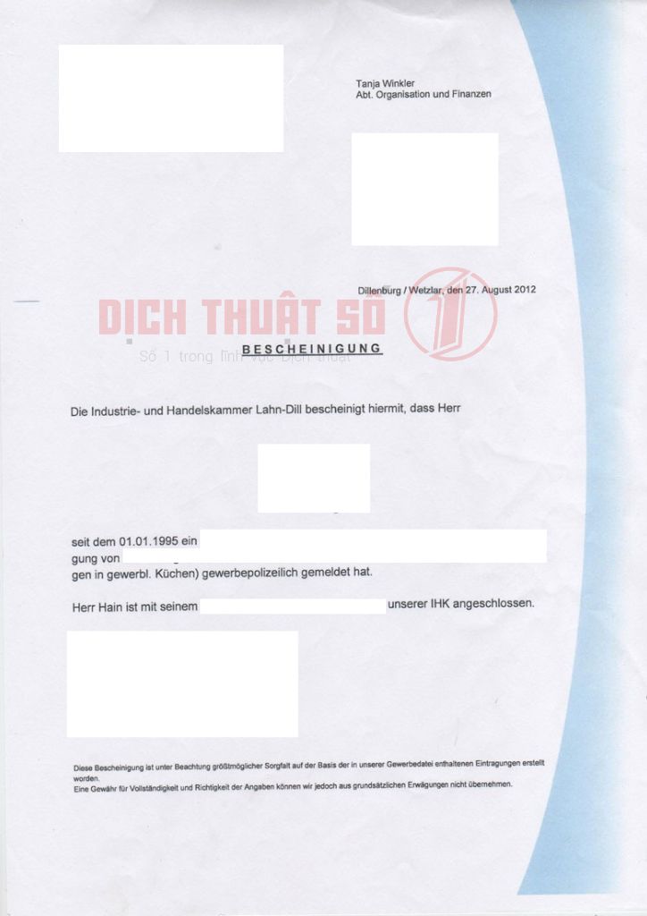 Dịch Thuật Công Chứng Giấy Đăng Ký Kinh Doanh Sang Tiếng Đức Nhanh Chóng