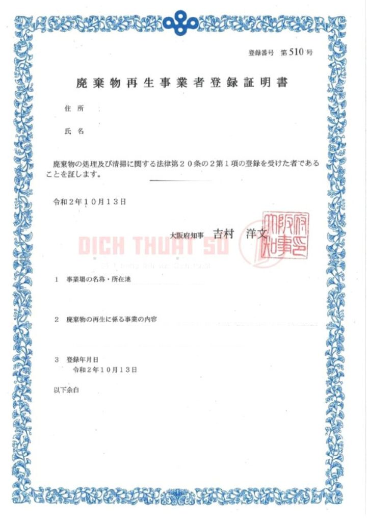 Địa Chỉ Dịch Thuật Công Chứng Giấy Phép Đăng Ký Kinh Doanh Sang Tiếng Nhật Uy Tín