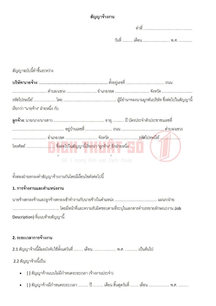 Tại Sao Nên Dịch Thuật Và Công Chứng Hợp Đồng Lao Động Tiếng Thái Tại Dịch Thuật Số 1?