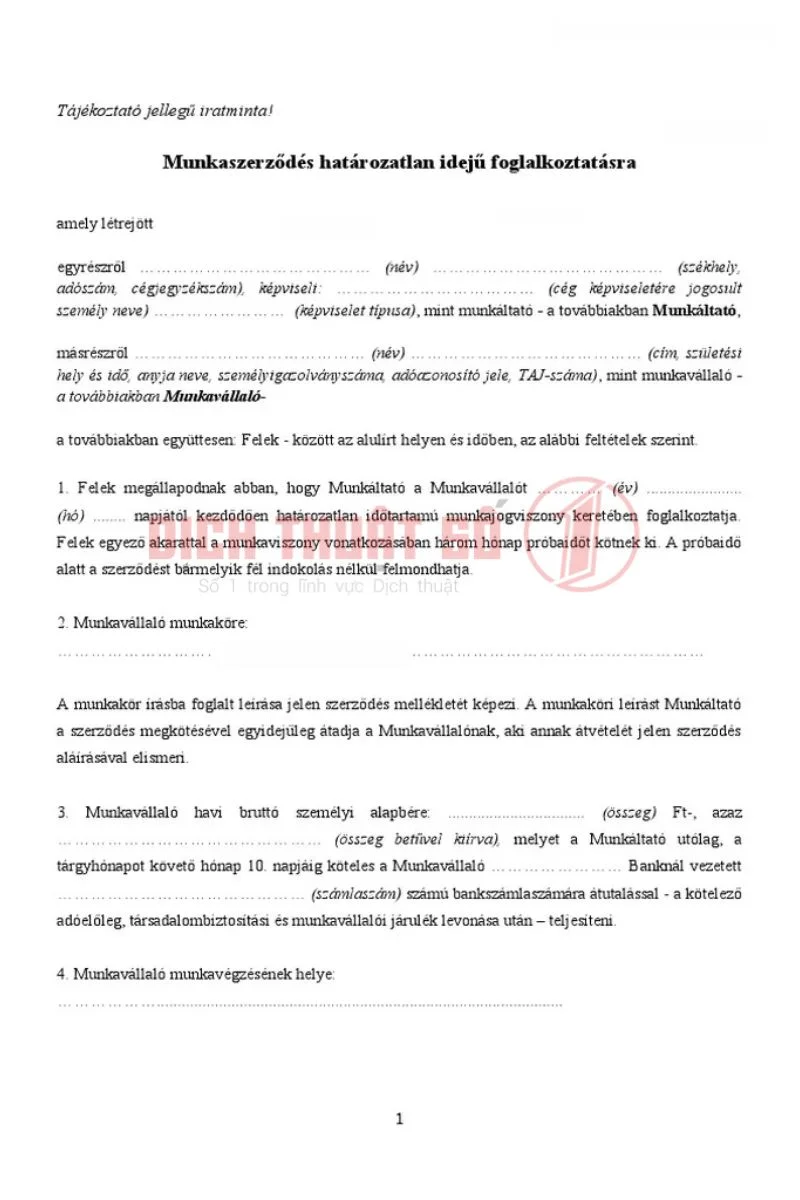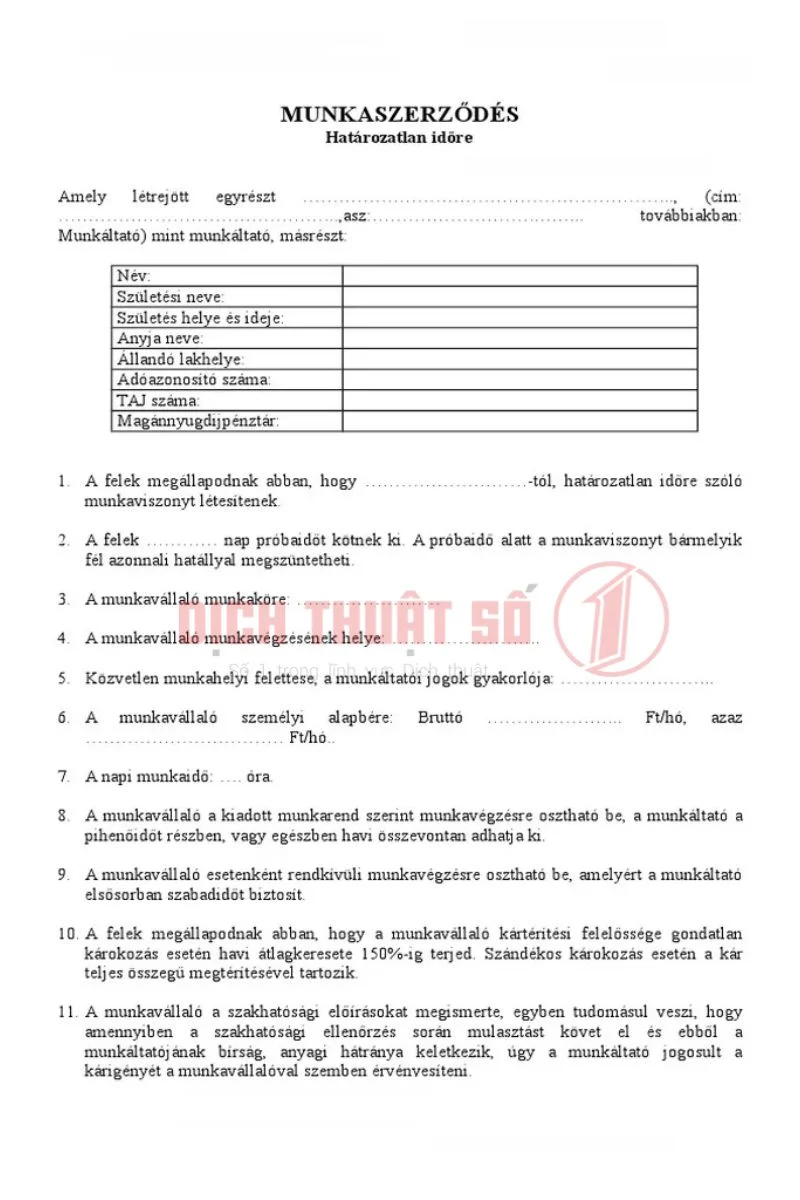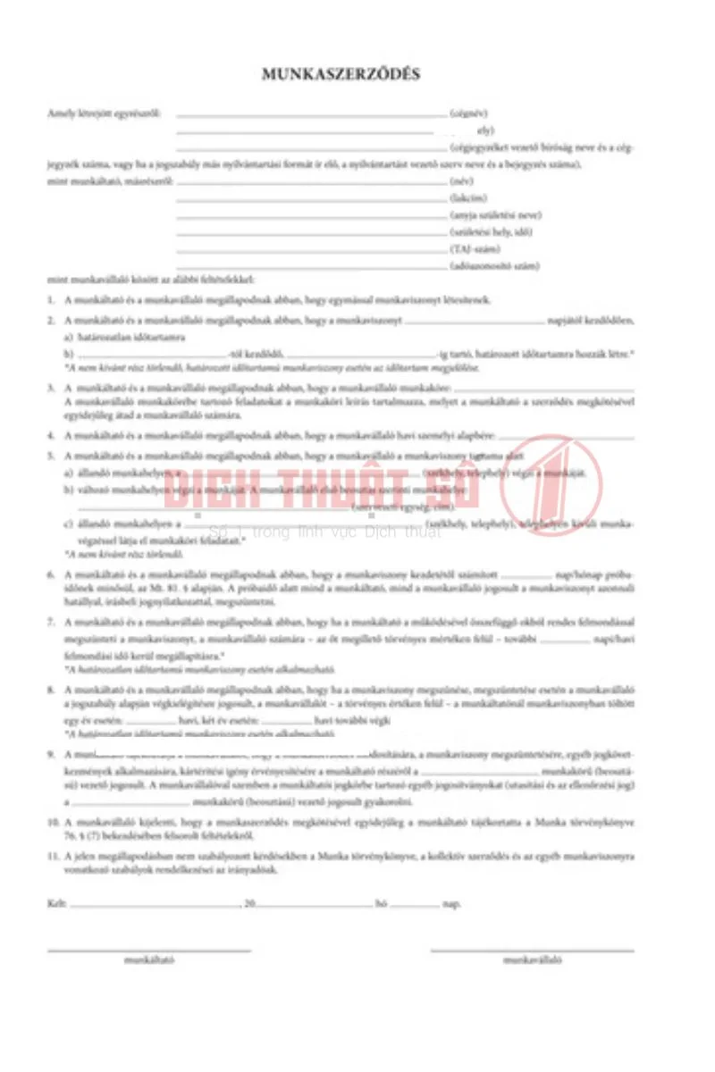 Dịch Vụ Dịch Thuật Công Chứng Hợp Đồng Lao Động Tiếng Hungary Nhanh, Chính Xác