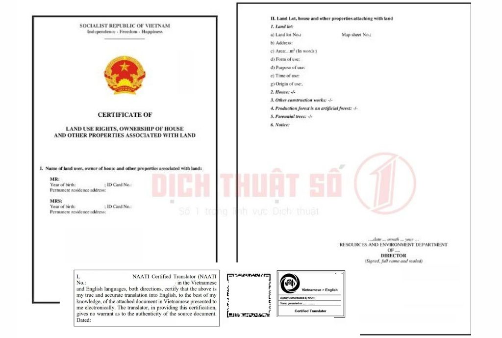 Địa chỉ dịch thuật giấy chứng nhận quyền sử dụng đất có chứng nhận NAATI uy tín