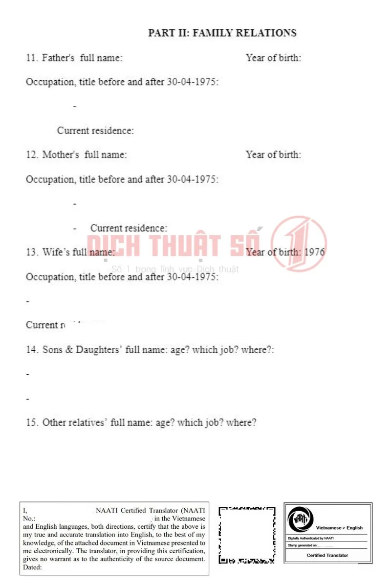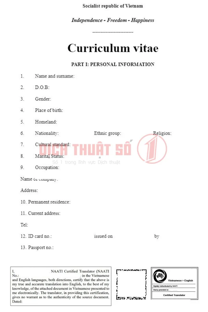 Dịch vụ dịch thuật sơ yếu lý lịch có chứng nhận NAATI tại Dịch Thuật Số 1