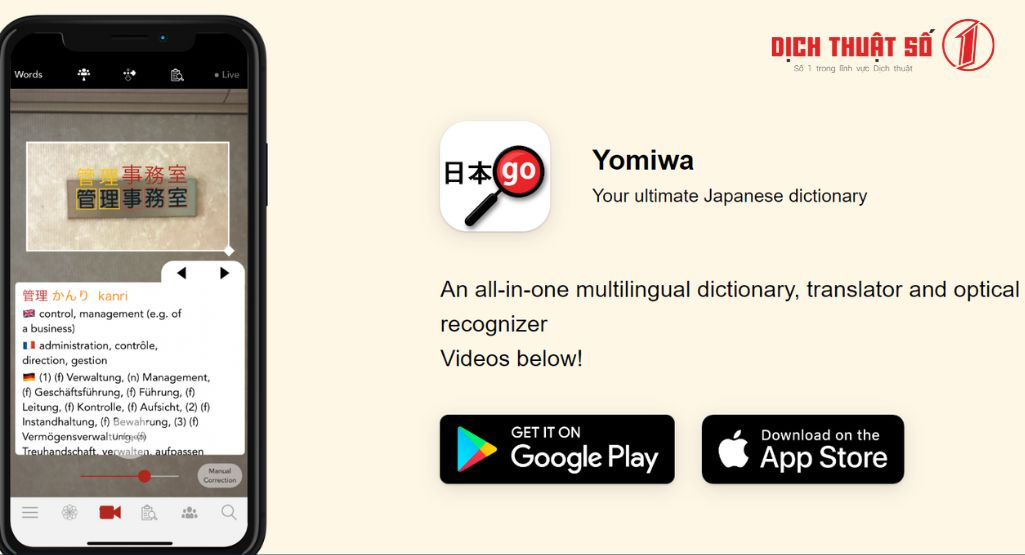 Yomiwa là ứng dụng chuyên biệt cho việc nhận diện và dịch tiếng Nhật, đặc biệt hữu ích với các tài liệu học thuật, sách vở.
