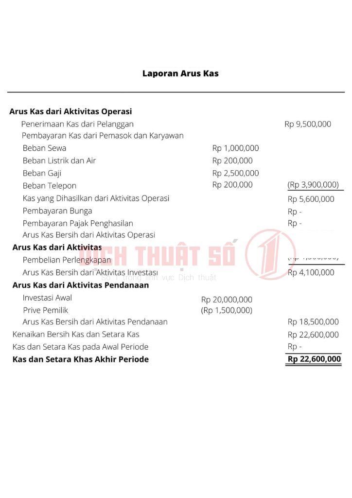 Để hồ sơ được chấp thuận tại Indonesia, báo cáo tài chính cần được dịch sang tiếng Indonesia hoặc tiếng Anh bởi phiên dịch viên có chứng chỉ hoặc tuyên thệ. Bản dịch công chứng sẽ được nộp cùng hồ sơ gốc để Đại sứ quán xác nhận cuối cùng.