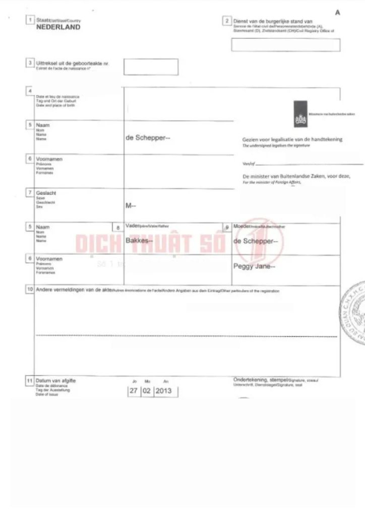 Dịch Vụ Hợp Pháp Hóa & Chứng Nhận Lãnh Sự Giấy Khai Sinh Hà Lan Trọn Gói Tại Dịch Thuật Số 1