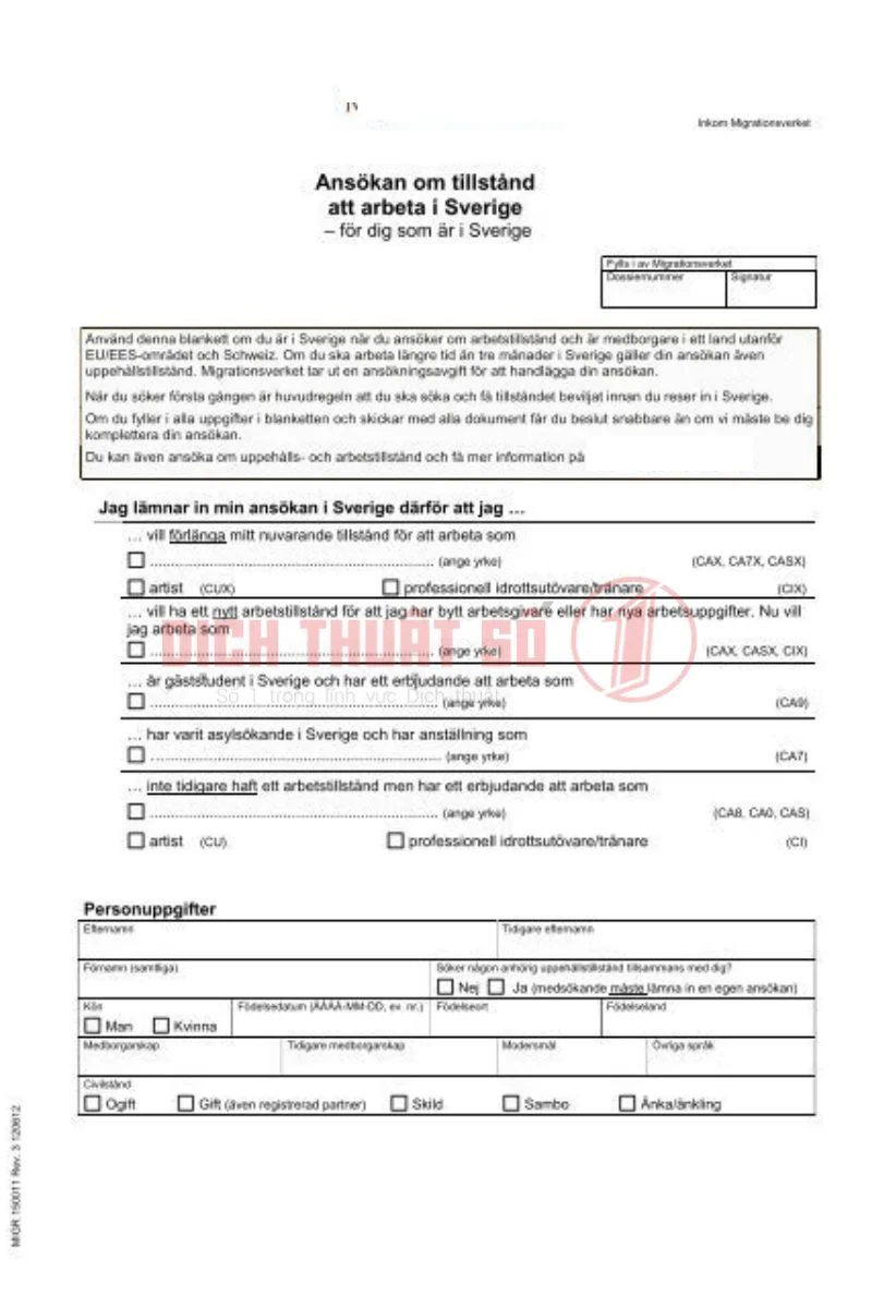 Cuối cùng, giấy phép lao động cần được dịch sang tiếng Thụy Điển hoặc tiếng Anh theo yêu cầu của cơ quan tiếp nhận hoặc đối tác tại Thụy Điển. Bản dịch phải được Notarization hoặc chứng thực hợp lệ để đảm bảo giá trị pháp lý trong quá trình làm việc, cư trú và giao dịch quốc tế.