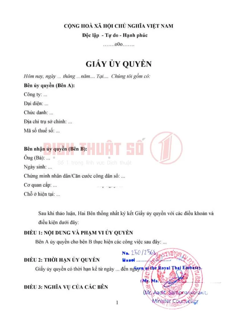 Dịch Vụ Hợp Pháp Hóa Lãnh Sự Giấy Ủy Quyền Thái Lan Giá Tốt Tại Dịch Thuật Số 1