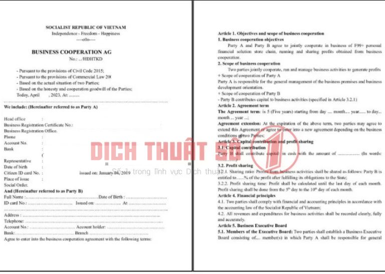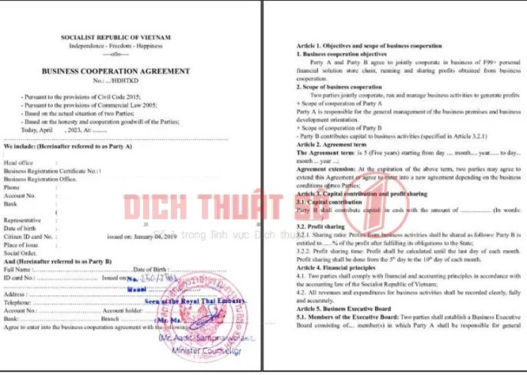 Dịch Vụ Hợp Pháp Hóa Lãnh Sự Hợp Đồng Hợp Tác Thái Lan | Dịch Thuật Số 1