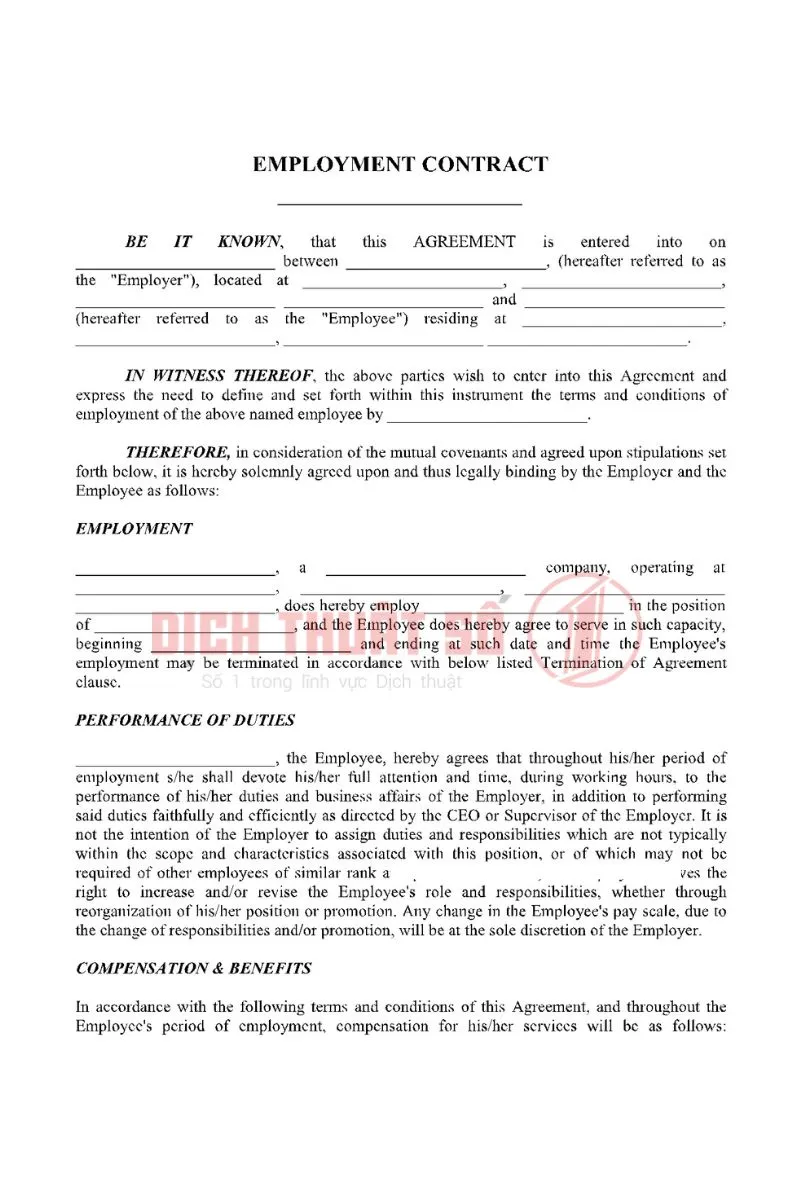 Sau khi consular legalization, hợp đồng lao động cần được dịch sang tiếng Việt để sử dụng tại Việt Nam. Bản dịch phải chính xác, đầy đủ và trình bày đúng chuẩn.