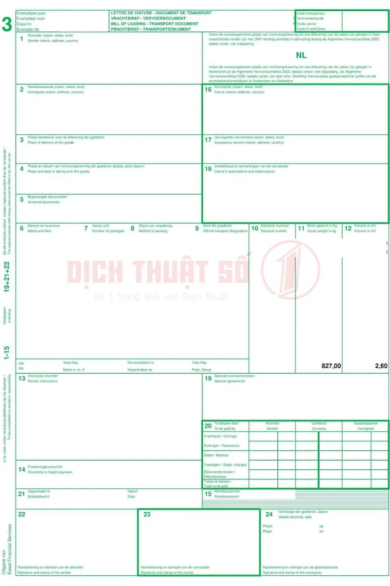 Báo Giá Dịch Vụ Hợp Pháp Hóa Lãnh Sự Vận Đơn Hà Lan Tại Dịch Thuật Số 1