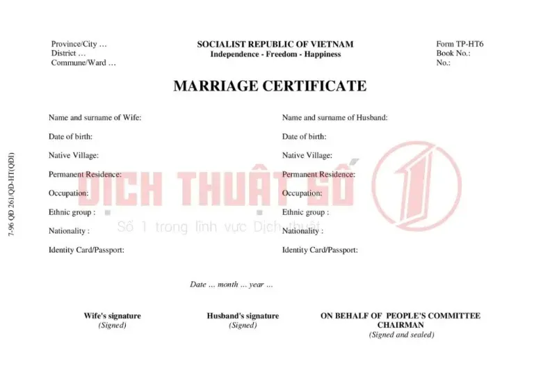 Consular legalization of the Certificate of Marital Status is an essential procedure to verify marital status for international purposes. Dịch Thuật Số 1 is committed to providing fast and accurate services, helping you save both time and costs.