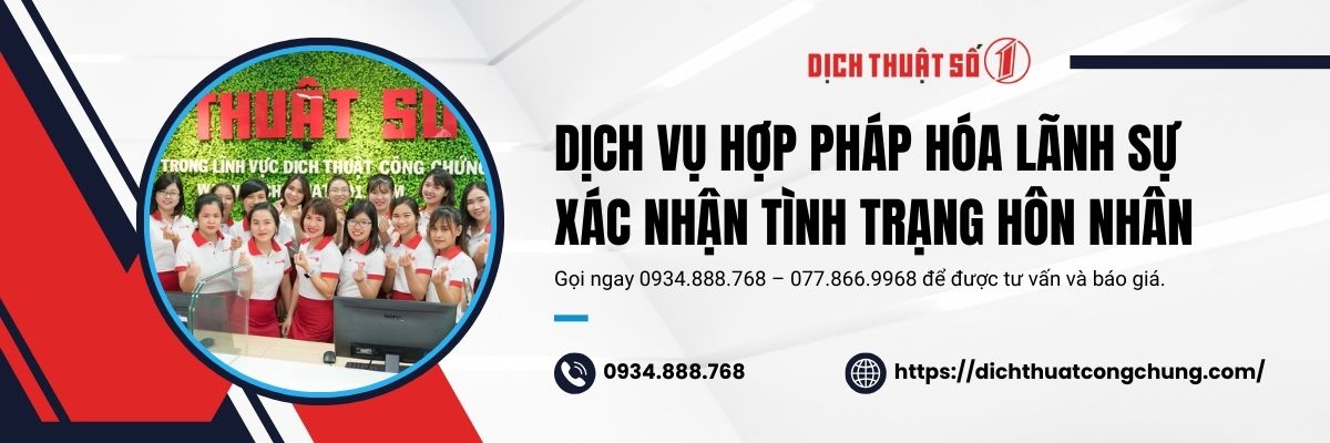 Consular legalization of the Certificate of Marital Status is an essential procedure to verify marital status for international purposes. Dịch Thuật Số 1 is committed to providing fast and accurate services, helping you save both time and costs.