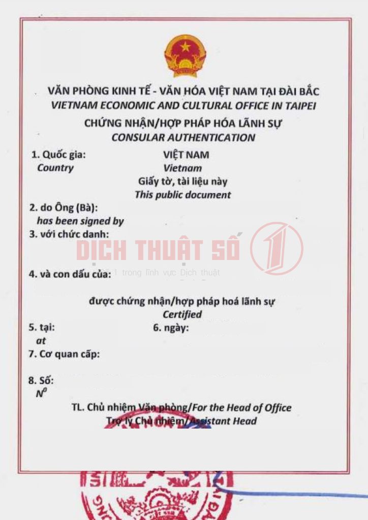 - Taiwan consular legalization: Carried out by the diplomatic representative office of the country where the document will be used, typically the Embassy or Consulate. This process ensures that documents from Taiwan are recognized and legally valid for use in Vietnam.