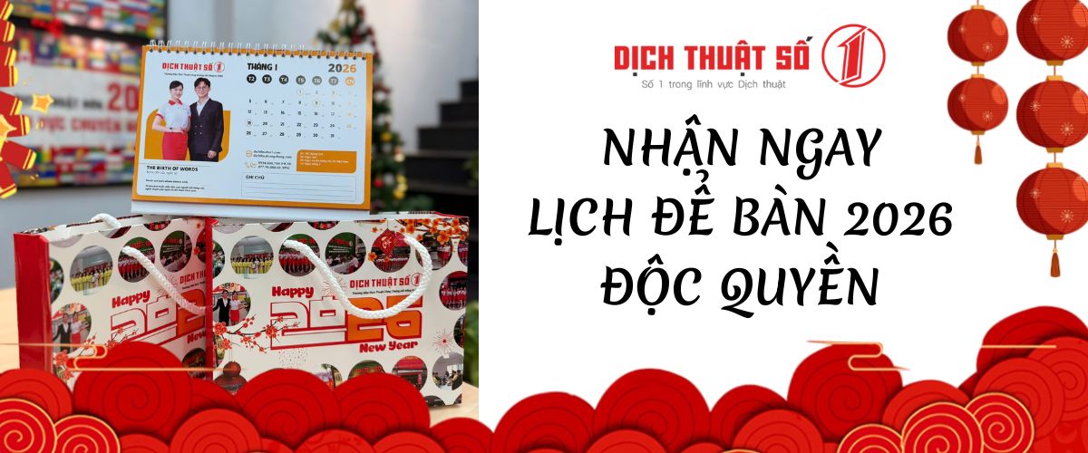 Bước sang năm mới 2026, No.1 Translation triển khai chương trình tri ân đặc biệt dành cho khách hàng đã đồng hành và tin tưởng sử dụng dịch vụ trong suốt thời gian qua. Món quà ý nghĩa mà chúng tôi gửi tặng chính là TẶNG ĐỘC QUYỀN LỊCH ĐỂ BÀN 2026 MIỄN PHÍ, mang thông điệp gắn kết – văn hóa – phát triển bền vững.