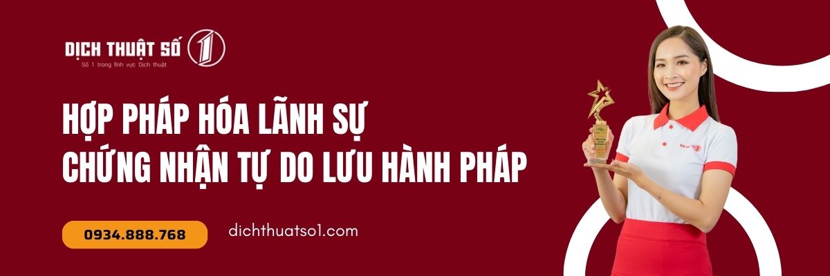 Để đảm bảo thời gian xử lý nhanh chóng và chính xác từ lần nộp hồ sơ đầu tiên, bạn nên sử dụng dịch vụ hợp pháp hóa lãnh sự chứng nhận tự do lưu hành Pháp trọn gói tại Dịch Thuật Số 1. Nơi hỗ trợ toàn diện từ A đến Z, giúp bạn hoàn tất thủ tục một cách an toàn và thuận tiện.