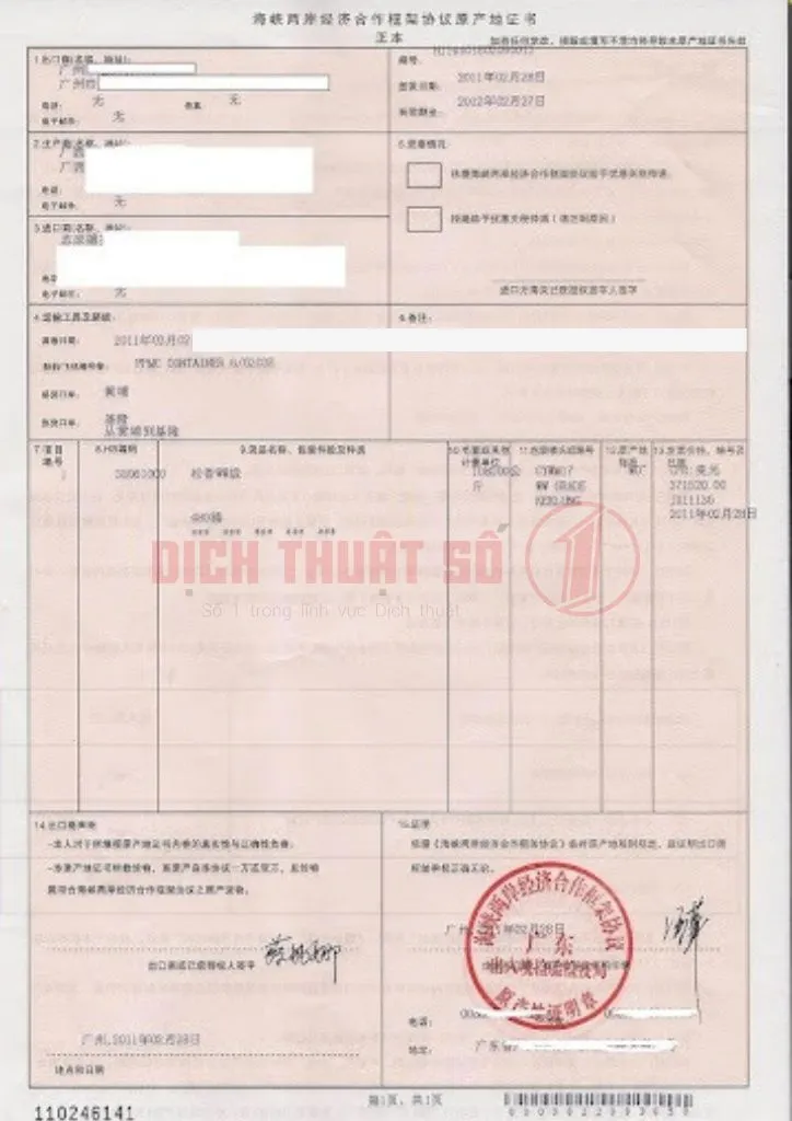 - Dịch chứng nhận xuất xứ sang tiếng Việt