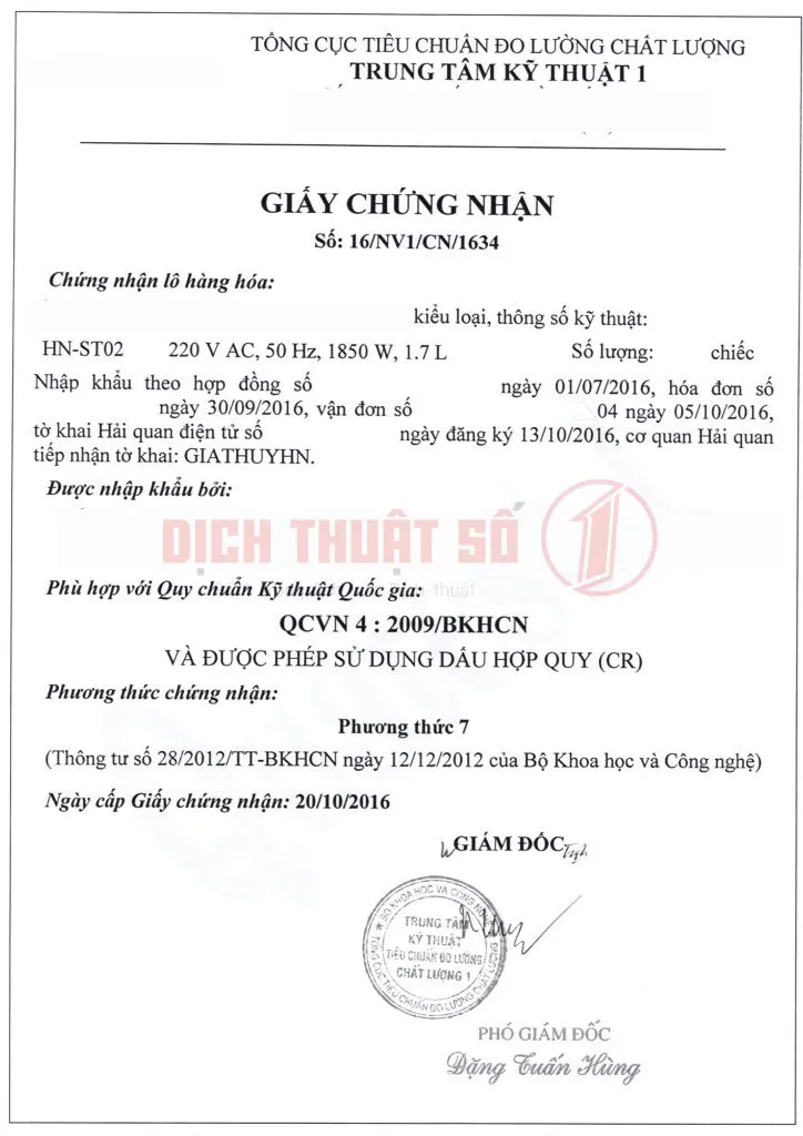 - Dịch chứng nhận xuất xứ sang tiếng Việt