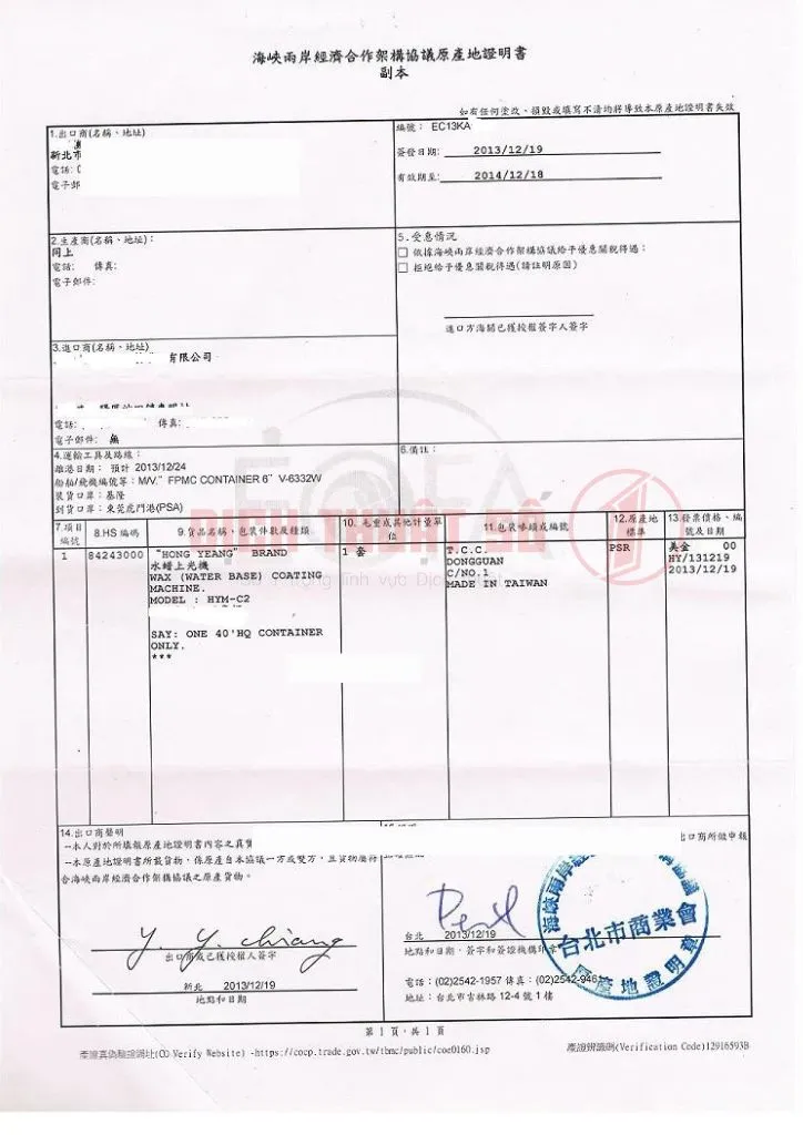 - Dùng tại Đài Loan: Nếu C/O được cấp từ Việt Nam hoặc quốc gia thứ ba và được sử dụng tại Đài Loan (ví dụ để nhập khẩu, kiểm tra chất lượng hoặc xin ưu đãi thương mại). Cần HPHLS bởi Văn phòng Kinh tế Văn hóa Đài Bắc tại Việt Nam hoặc cơ quan có thẩm quyền tương đương.