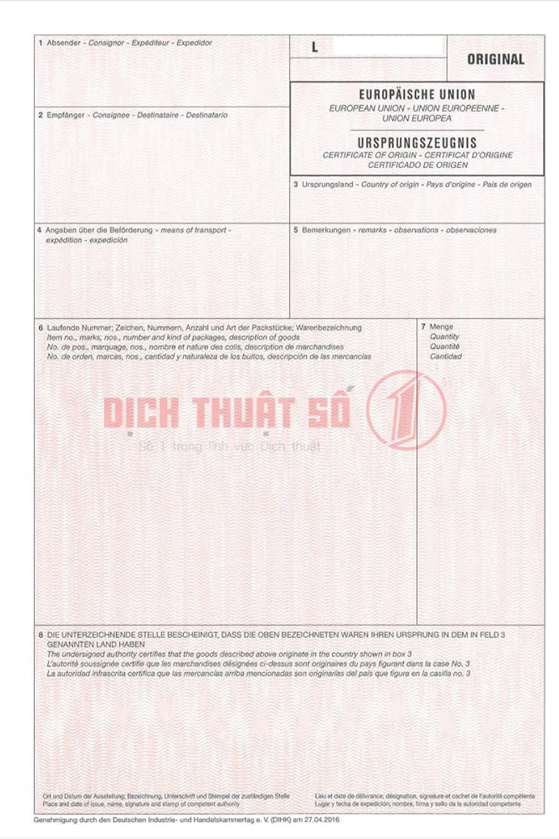 Chứng nhận xuất xứ là tài liệu thương mại quan trọng, thể hiện rõ nguồn gốc hàng hóa, thông tin doanh nghiệp xuất khẩu – nhập khẩu và căn cứ áp dụng các chính sách thuế quan. Văn bản này sẽ được sử dụng xuyên suốt trong toàn bộ quá trình hợp pháp hóa lãnh sự tiếp theo.